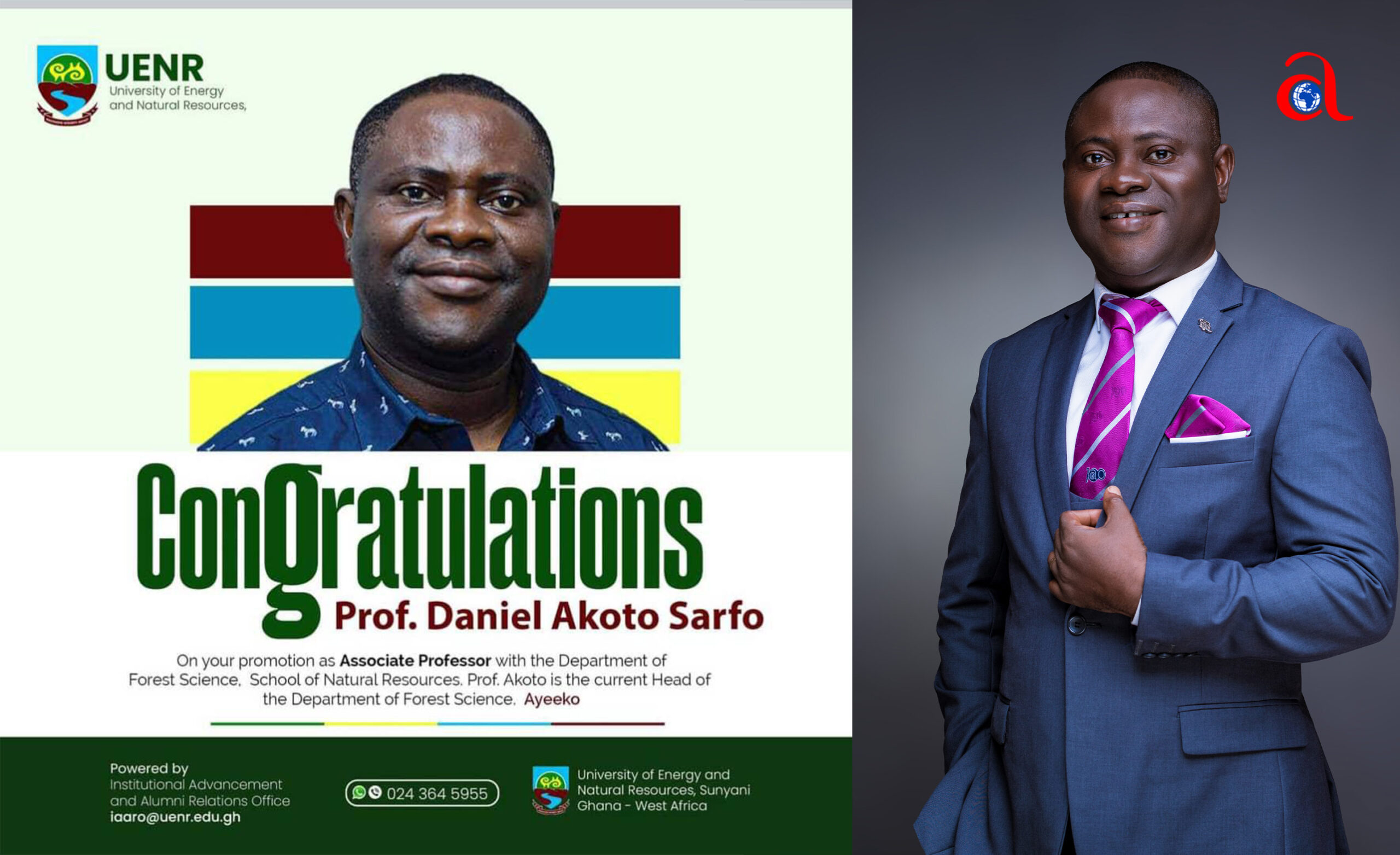 Dr. Sarfo is the Head of  Department for Forest Science at the School of Natural Resources in UENR. His promotion recognizes his unwavering commitment and substantial contributions to the academic community.