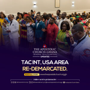 The President of The Apostolic Church-Ghana Apostle Dr. Aaron Ami-Narh by consent of The Council of Apostles and Prophets has re-demarcated the USA Area into Area A and Area B. This was occasioned on the 7th of July, 2024 at the Delaware Branch of The Apostolic Church International located at the 2042 Sunset Lake Road...